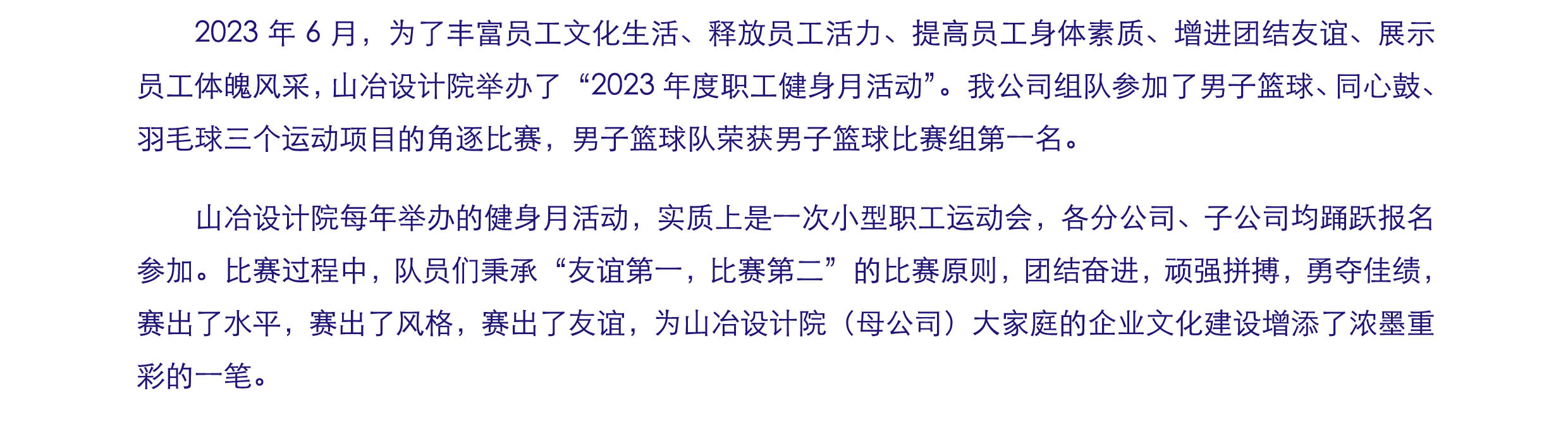 2023年7月,公司榮獲山冶設(shè)計院2023年度健身月活動佳績