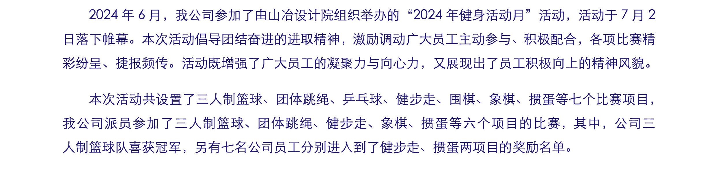 2024年6月,公司喜獲山冶設(shè)計健身月活動佳績