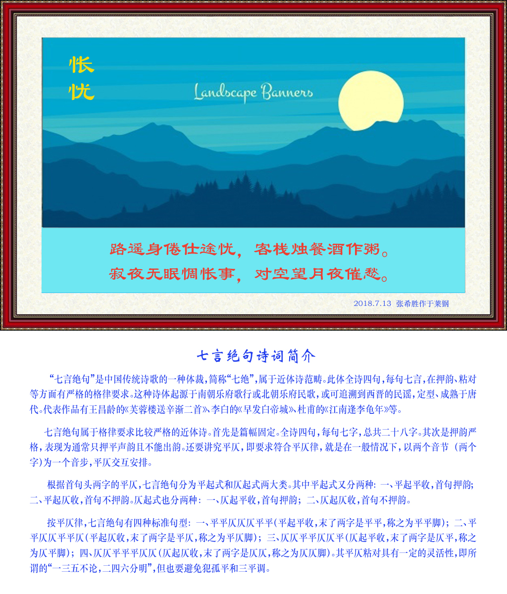 2018年7月,詩(shī)詞(七言絕句):《惆悵》