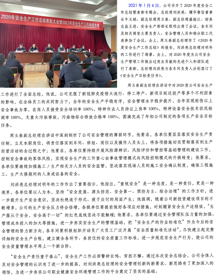 公司召開2020年度安全工作總結(jié)暨表彰會(huì)