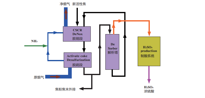 吸附SO2的活性焦經(jīng)加熱再生,獲得濃度>8%的SO2氣體,回收硫資源?;钚越乖偕謴?fù)吸附活性后循環(huán)使用。