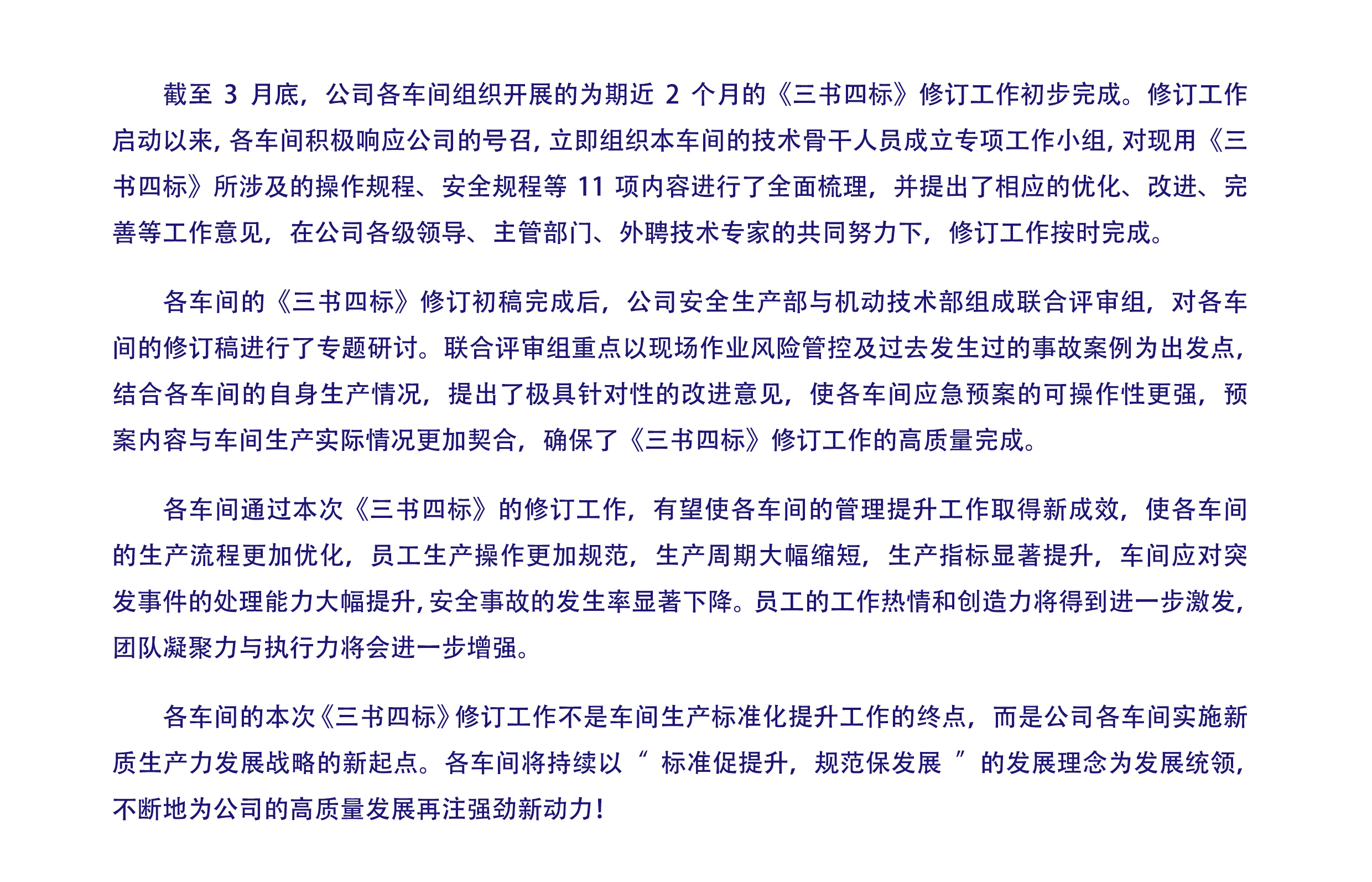 2025年3月,各車間的《三書四標(biāo)》修訂工作初步完成