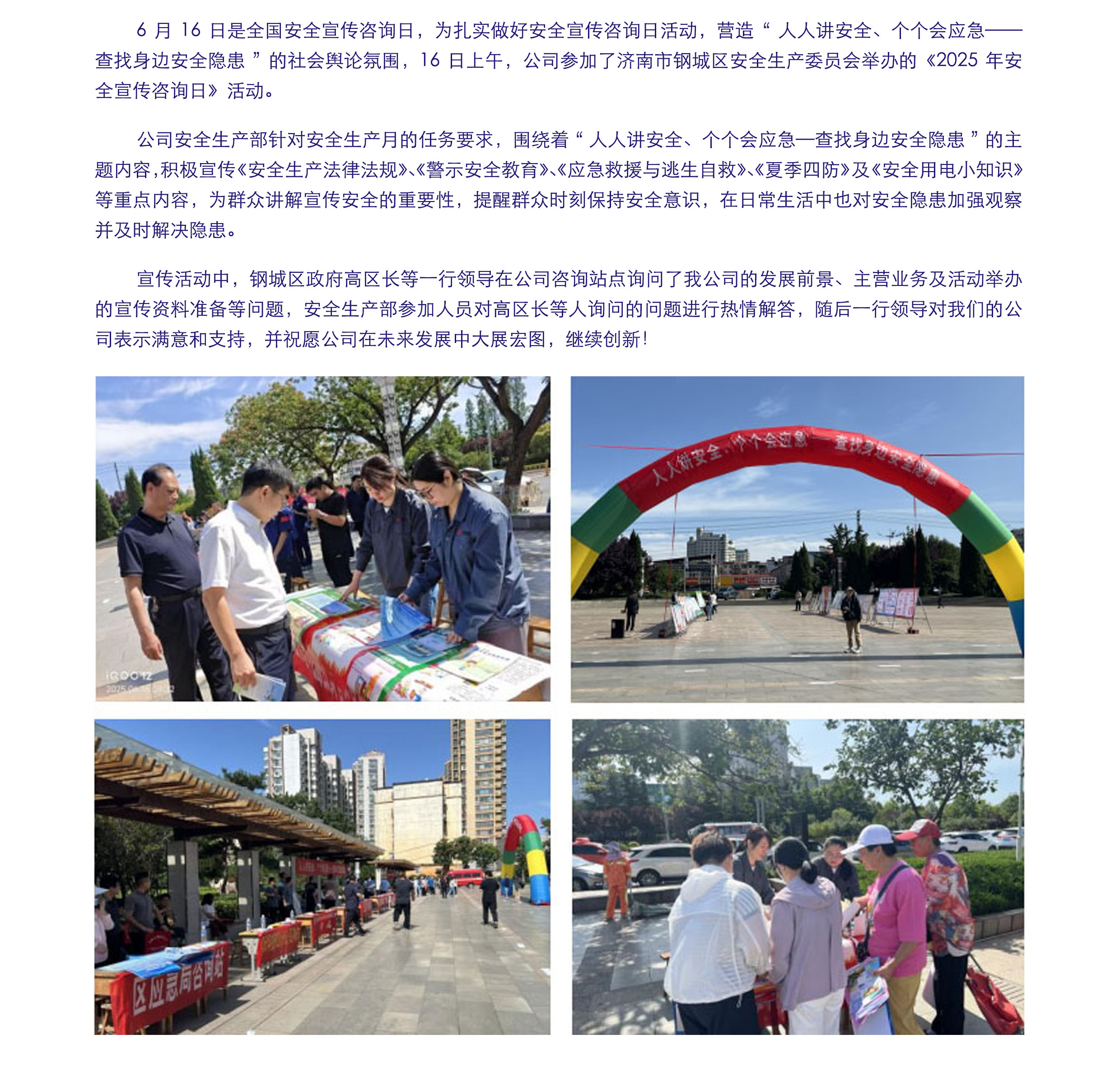 2025年6月16日,公司參加了鋼城區(qū)舉辦的“安全宣傳咨詢?nèi)铡被顒?dòng)